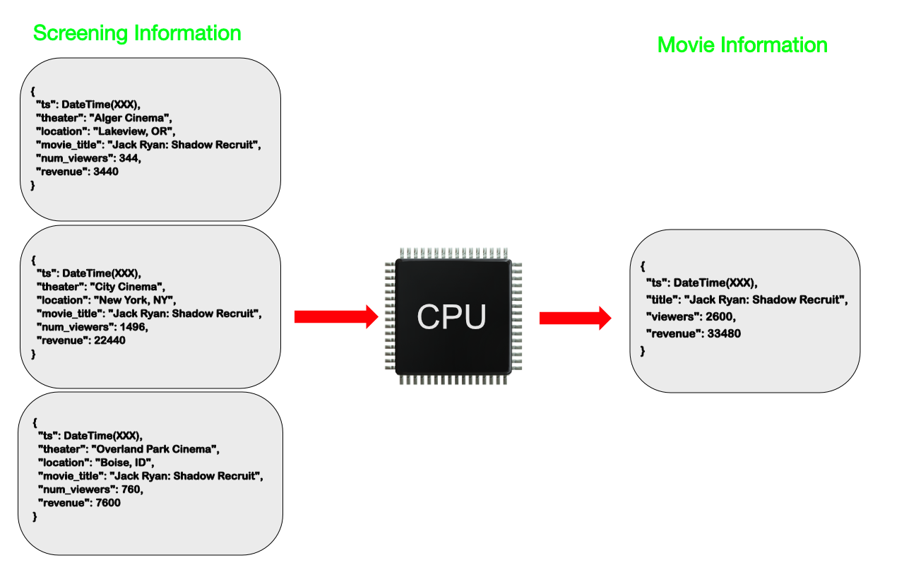 In our movie database example, we can do the computations based on all of the screening information we have on a particular movie, compute the result(s), and store them with the information about the movie itself. In a low write environment, the computation could be done in conjunction with any update of the source data. Where there are more regular writes, the computations could be done at defined intervals - every hour for example. Since we aren‘t interfering with the source data in the screening information, we can continue to rerun existing calculations or run new calculations at any point in time and know we will get correct results.