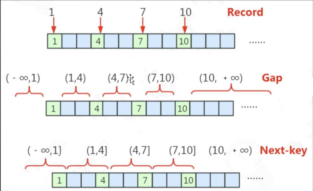 Next-Key Lock:临键锁,相当于Gap+Record的集合,采取左开右闭原则,innodb的默认锁,没有成功就会退化成gap,或者由gap再退化成record
