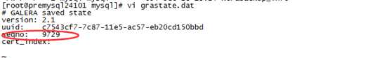修改premysql24101 的grastate.dat 文件的seqno: 事务号,