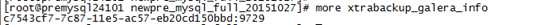 备份命令 innobackupex --user=root --password=111111 --defaults-file=/etc/my.cnf --socket=/data/mysql/mysql.sock --galera-info --no-timestamp --stream=tar /data/mysql_bak 2>/data/mysql_bak/innobak.log | gzip 1>/data/mysql_bak/newpre_mysql_full_20151027.tar.gz